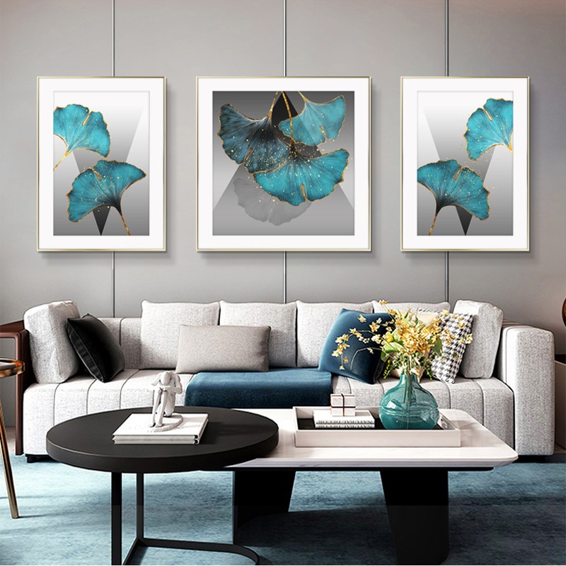 Gold Light Flow Leaf Modern Simple Living Room Decorative Painting Sofa Background Wall Hanging Light Luxury Triptych Abstract Gilt Line Mural